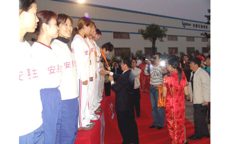 2005年10月22日至10月27日,首屆全國(guó)航空運(yùn)動(dòng)會(huì)的飛機(jī)定點(diǎn)跳傘比賽項(xiàng)目和飛機(jī)花樣跳傘項(xiàng)目在江蘇安惠生物科技公司廠區(qū)內(nèi)成功舉行。26日下午,在安惠生物科技有限公司廠區(qū)舉行了隆重的頒獎(jiǎng)儀式,國(guó)家體育總局群眾體育司副司長(zhǎng)平措西村和江蘇安惠生物有限公司董事長(zhǎng)陳惠等為取得前三名運(yùn)動(dòng)員頒發(fā)了獎(jiǎng)牌。