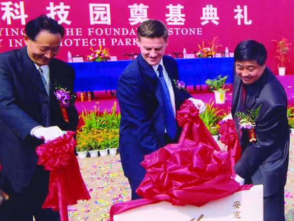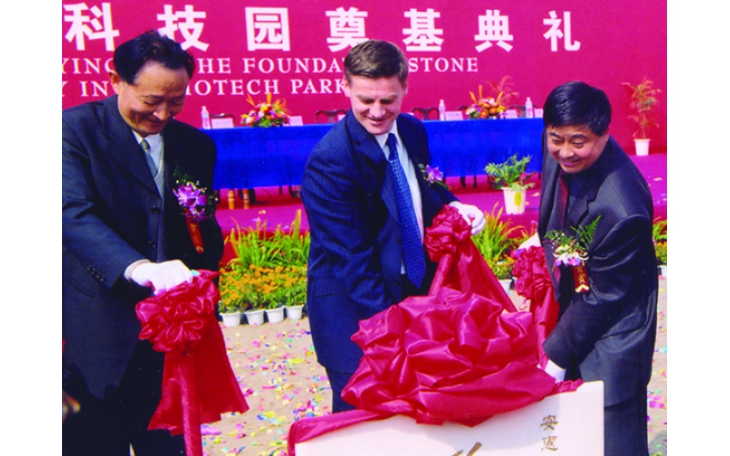 2002年10月24日“安惠國際生物科技園”奠基,參加奠基典禮的有新西蘭國家黨主席英格里希及他所率領(lǐng)的政府代表團(tuán)和科技代表團(tuán),南通市委、市政府領(lǐng)導(dǎo)和有關(guān)專家學(xué)者計(jì)200多人。