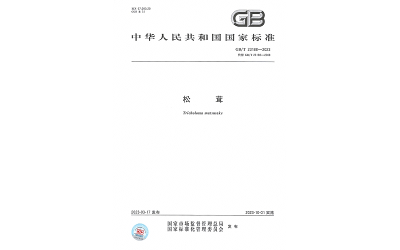 2023年3月,由江蘇安惠生物科技有限公司參與修訂的國標(biāo)GB/T 23188-2023《松茸》于中華人民共和國國家標(biāo)準(zhǔn)公告(2023年第1號(hào))發(fā)布,將于2023年10月1日起正式實(shí)施。