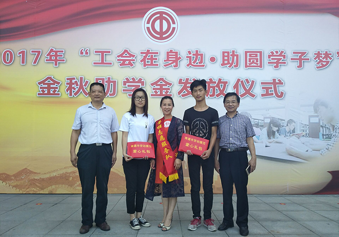 2017年8月24日上午,南通市總工會(huì)組織召開“工會(huì)在身邊 助圓學(xué)子夢(mèng)”金秋助學(xué)活動(dòng)。安惠公司副董事長陸漢萍出席活動(dòng)。她心系寒門學(xué)子,積極響應(yīng)并加入到勞模志愿服務(wù)隊(duì)伍當(dāng)中,通過安惠愛心基金定向捐助張沙宇、秦玉婷兩位困難職工的子女,圓了他們的上學(xué)夢(mèng)。她勉勵(lì)兩位學(xué)子努力學(xué)習(xí),學(xué)有所有成,回報(bào)社會(huì);同時(shí)也承諾,安惠人將一如既往地關(guān)注、幫助到他們的成長。